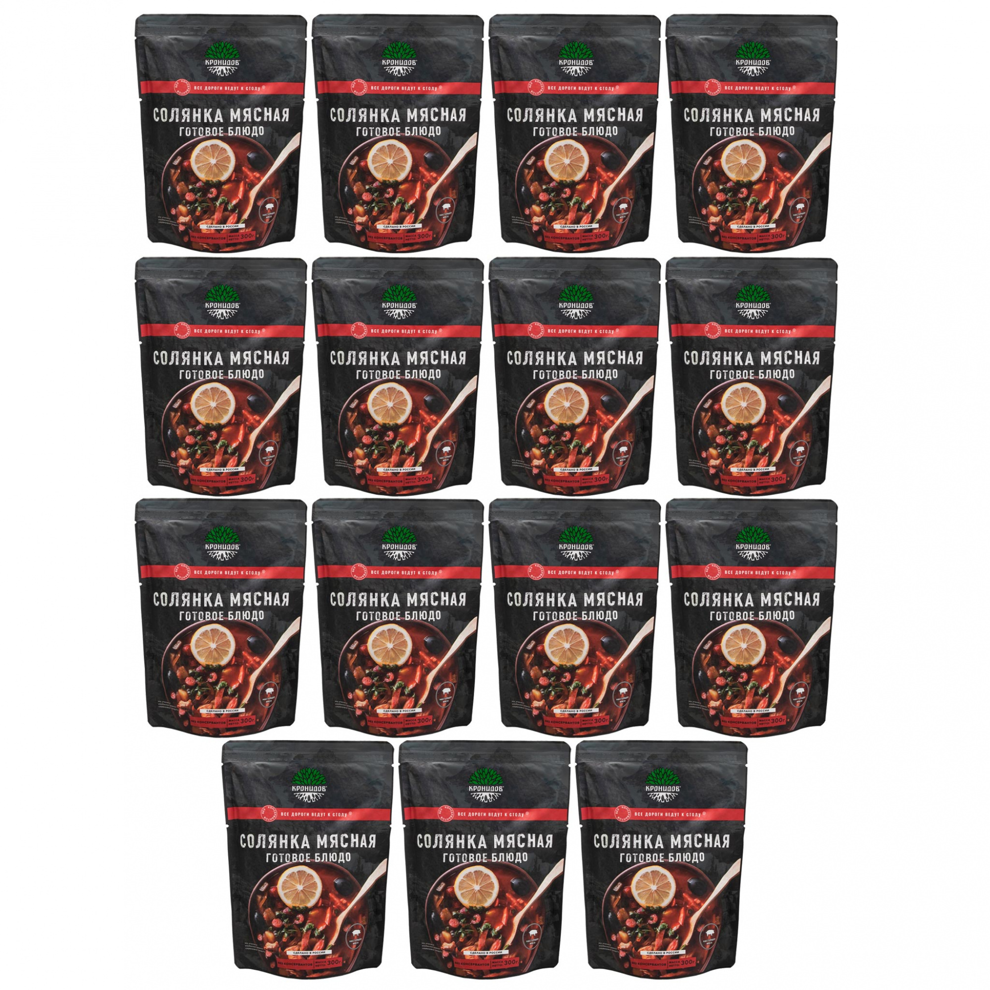 Набор из 15 готовых первых блюд "Солянка" 300 г. (Кронидов) - наваристый сборный мясной суп с долькой лимона по традиционному рецепту. Сытное и ароматное блюдо без хлопот.