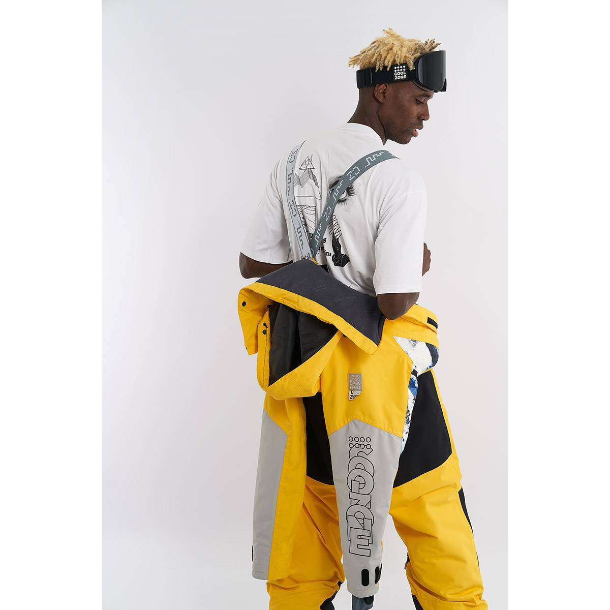 Вдохновляясь масштабом и непоколебимостью горных вершин, мы создали уникальный графический дизайн для комбинезона VETER. Он объединил в себе яркие и смелые цветовые сочетания, и фирменную графику.