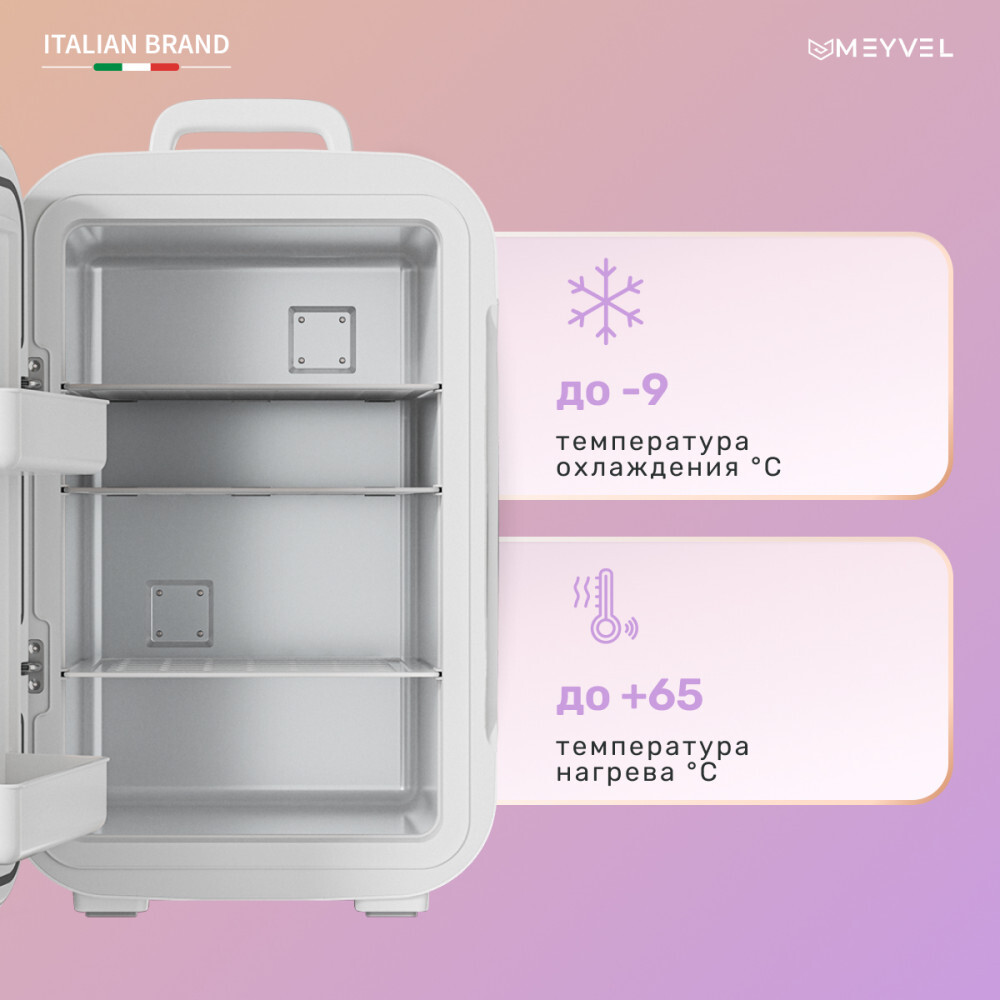 Бьюти-холодильник Meyvel MB-25HC1W на 25 л – идеальный вариант для всех, кто заботится о своей красоте и здоровье. Он надолго сохранит свежесть и питательные свойства косметических средств, и вы будете уверены в их длительной эффективности.