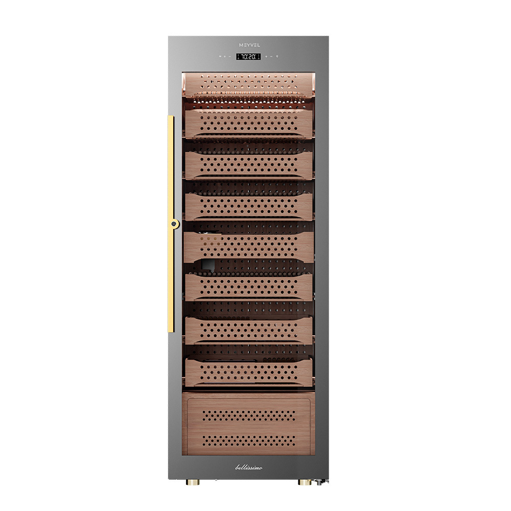 Meyvel MC-272BK (PRO) — выбор ценителей сигар. Этот премиальный хьюмидор с впечатляющим внутренним объемом в 272 литров, способным вместить до 1500 сигар.